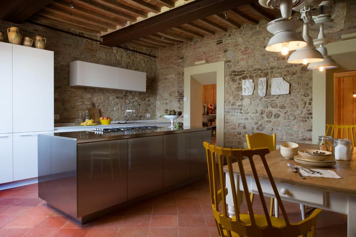 Mazzini 31 is located in the heart of the town of Monteleone D’Orvieto in Umbria and in one of the most beautiful spots of the Valley of the Chiana where Etruscans once roamed.Narrow streets, and small town life overlook the valley of Chiana below where you’ll be close to Citta della Pieve which features some of the best nearby restaurants and shops. As with the entire area, you’ll feel the ancient Etruscan culture everywhere. Perugia is worth the short drive and the mix of ancient and contemporary culture. Otherwise enjoy small town life and the stunning natural beauty of Tuscany from the villa. It is very centrally located at the border of Umbria and Tuscany and is less than 2 hours from Rome and Florence, less than one hour from Siena and Arezzo and within a half hour of the city of Perugia.