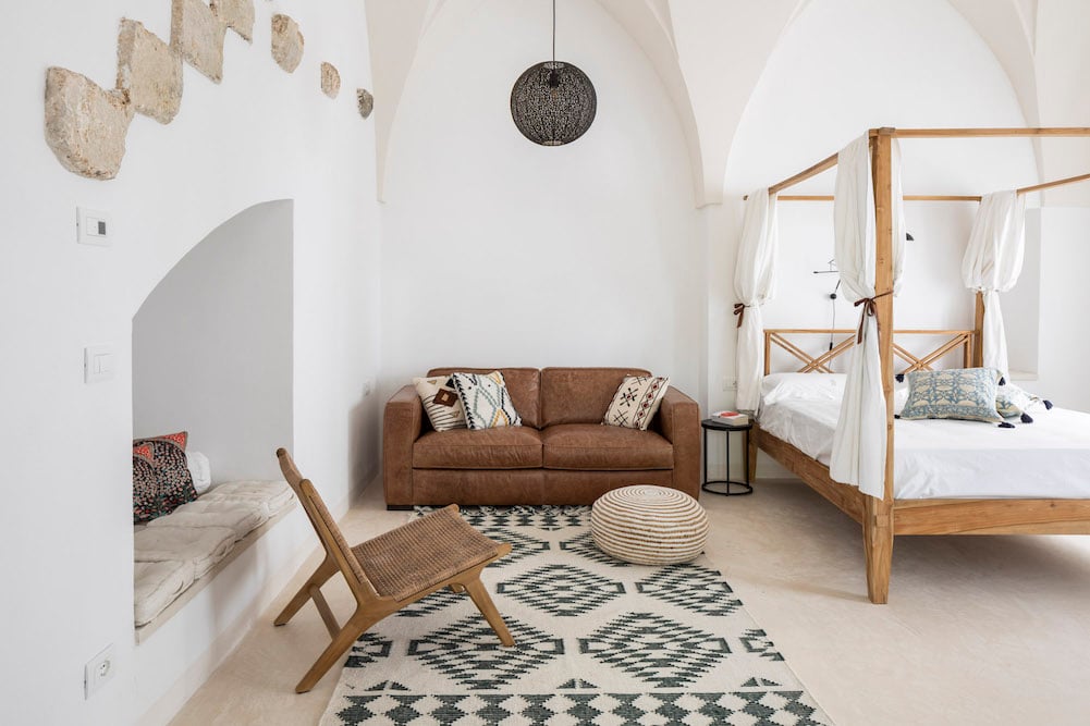 De 5 hotelwaardige slaapkamers zijn verdeeld over de drie onafhankelijke gebouwen. De meeste kamers hebben stenen gewelfde plafonds, die typerend zijn voor het gebied in Puglia, en betonnen vloeren. Overal vindt u een combinatie van een modern design, in het oog springende kleuren en interessante elementen die elke ruimte uniek en persoonlijk maken. Ook zijn er 5 luxe badkamers, waarvan de meeste ensuite zijn. De badkamers zijn uitgerust met inloopdouches en soms zelfs met een ruim ligbad. Alle ruimtes beschikken over vloerverkoeling en -verwarming. Daarnaast staan eerste klas matrassen en hoge kwaliteit linnen en handdoeken voor u klaar.